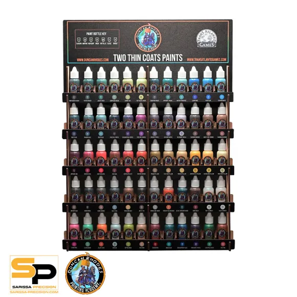 Duncan Rhodes is back with a riot of colour that'll make your miniatures weep with joy! Series three of his Two Thin Coats paint range is now available for pre-order, boasting 60 shiny new pots, including triads, bright shades, and metallics... just in time for those hobby hours that no one wants to end. Get your paint rack included and don't miss out! #DuncanRhodes #HobbyTime #MiniaturePainting #SarissaPrecision #PreOrders