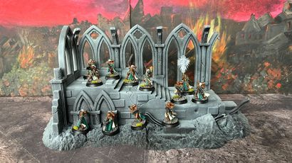 Scaled to fit alongside your existing pieces of Warhammer 40.000* buildings and terrain, this detailed cathedral will make an impressive centrepiece to any tabletop battlefield. A huge ruin, it comes in two pieces to aid storage (and to fit your printer!) and can be assembled as one massive building.