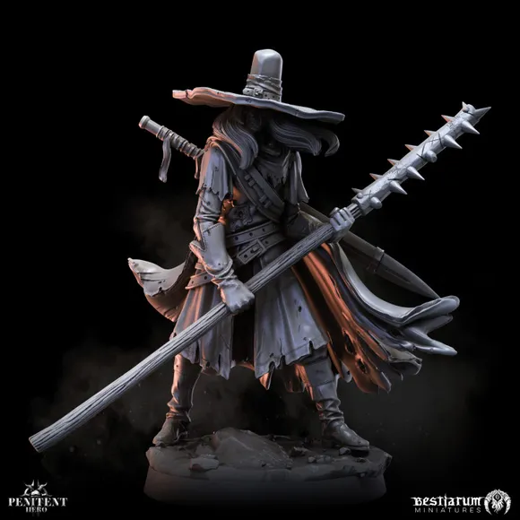Continuing the grimdark theme in my Rangers of Shadow Deep campaign, I am considering the addition of the Penitent Headhunter miniature also from Bestiarum Miniatures. This model, draped in a somber cloak and marked by a distinctive spiral-masked face, is ideal for portraying a ranger with a mysterious and dark past. The simplicity and effectiveness of its design, featuring textured ropes and layered clothing, align perfectly with the aesthetic of the 'Rangers of Shadow Deep' world I have in mind, especially for those who, like me, are drawn to a darker tabletop representation.